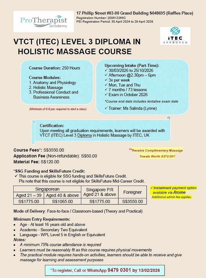 ITEC Diploma Holistic Massage in December 25 & January 26 - Day & Night Classes (7 mths)